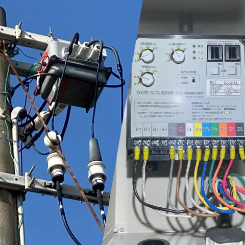 電力会社とお客さまの責任分界点に設置し、保護継電器と組み合わせて地絡事故が起きた時に、波及事故(付近一帯が停電する事故)を防止する重要な機器です。