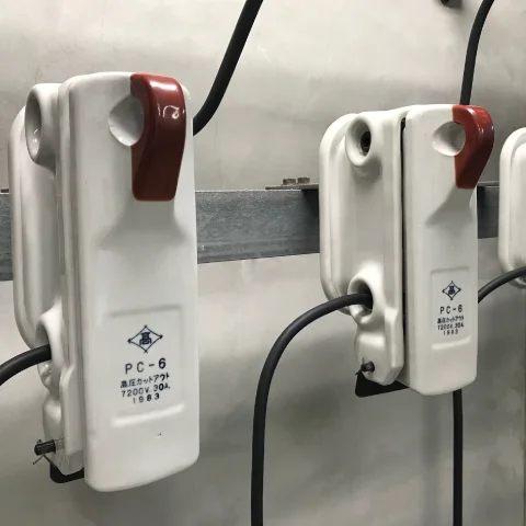 責任分界点に設置した高圧気中開閉器から、キュービクルや電気室へ電気を安全に送るために使用されます。
