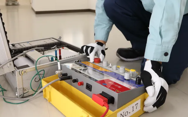作業者が電路に触れたり接近したりする際の感電事故を防ぐための絶縁用保護具が本来の絶縁性能を維持しているかを確認します。