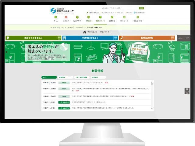 経済産業省 資源エネルギー庁の「省エネポータルサイト」は、家庭や中小企業、事業者の皆さまが「今できる省エネ」の方法を学び、実践するための総合情報サイトです。